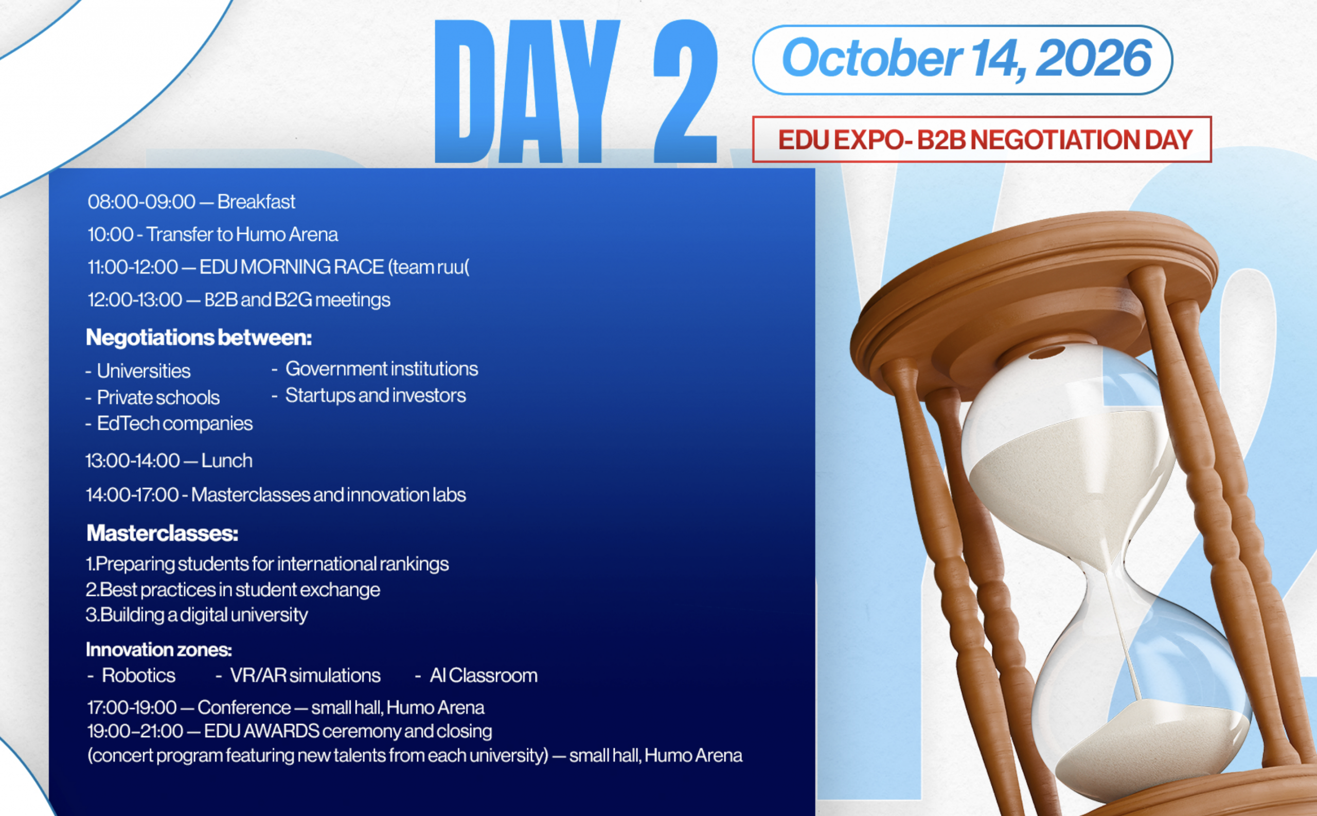 As part of EDU EXPO 2026, participants will enjoy panel discussions, master classes, and presentations of advanced technologies and innovative solutions for education.